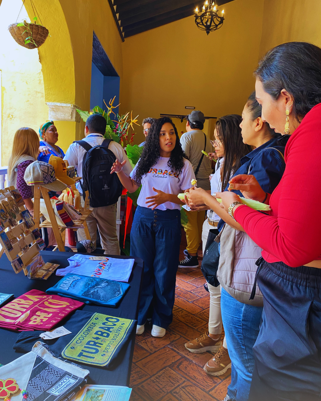 La colectiva Guerreras Yurbaco nació en 2021, impulsada por un grupo de mujeres emprendedoras del sector cultural, apasionadas por el arte, la gestión cultural y el trabajo social. Con excelentes habilidades artísticas y conscientes del gran potencial turístico de Turbaco, decidimos crear la Tienda Turística y Artesanal Guerreras Yurbaco. Este emprendimiento pionero se convirtió en un referente en el municipio, siendo una fuente de sustento para mujeres gestoras, artistas, artesanas, y trabajadoras de la industria textil, el estampado y la gastronomía. No solo buscamos promover el desarrollo económico y cultural, sino también generar incidencia social y política, fomentando espacios de inclusión, empoderamiento y liderazgo femenino.